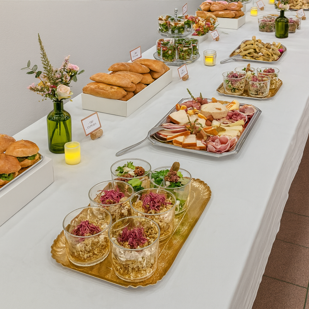 Que ce soit pour un anniversaire, un mariage, un cocktail d’entreprise ou simplement un apéro entre amis, nous réalisons des buffets savoureux, faits maison, présentés avec soin et créativité.