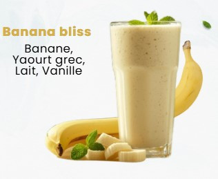 Un smoothie gourmand composé de banane, yaourt grec, lait et vanille.