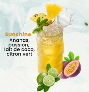 Un jus tropical lumineux associant ananas, fruit de la passion, lait de coco et citron vert.