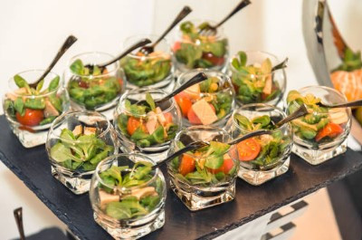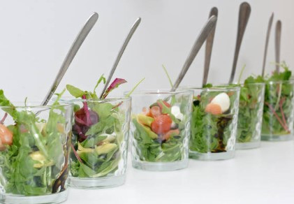 Nos mini salades en verrine sont des petites portions de salades élégamment présentées dans des verres transparents.