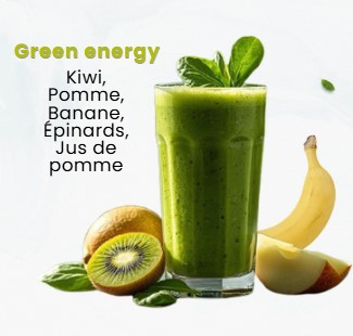 Un smoothie frais à base de kiwi, pomme, banane, épinards et jus de pomme.
