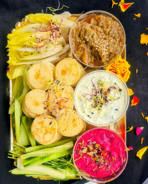 Un plateau composé de tartinables savoureux et colorés, parfait pour un moment apéritif gourmand.